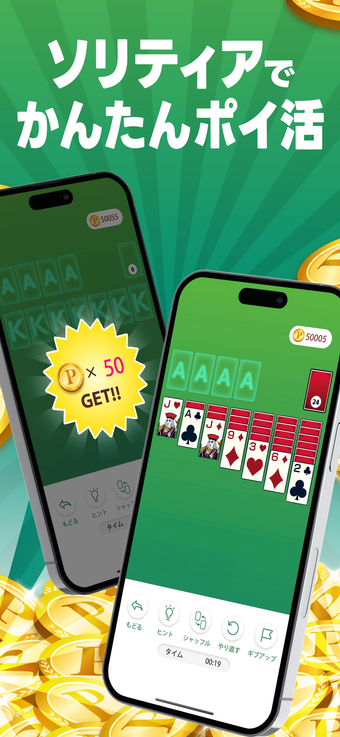 ポイ活Payソリティア-そるティアポイント貯まる är en gratis app för iPhone som ger spelare möjlighet att njuta av det klassiska kortspelet Klondike Solitaire. Med enkel och tydlig grafik, erbjuder spelet en lättillgänglig plattform för både nybörjare och erfarna spelare. Användare kan sträva efter att uppnå de snabbaste klarningstiderna och samla poäng under sina spelsessioner. Spelet inkluderar olika hjälpverktyg, som att blanda kort, återgå ett drag och få tips, vilket gör det lättare att spela och nå målen.